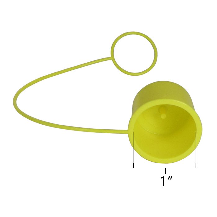 The *Bradley 107-371 Plastic Eyewash Dust Cover Yellow* is approximately 1" x 1" and constructed of yellow plastic. It includes the plastic tether to attach the Dust Cover to the eyewash sprayhead assembly.