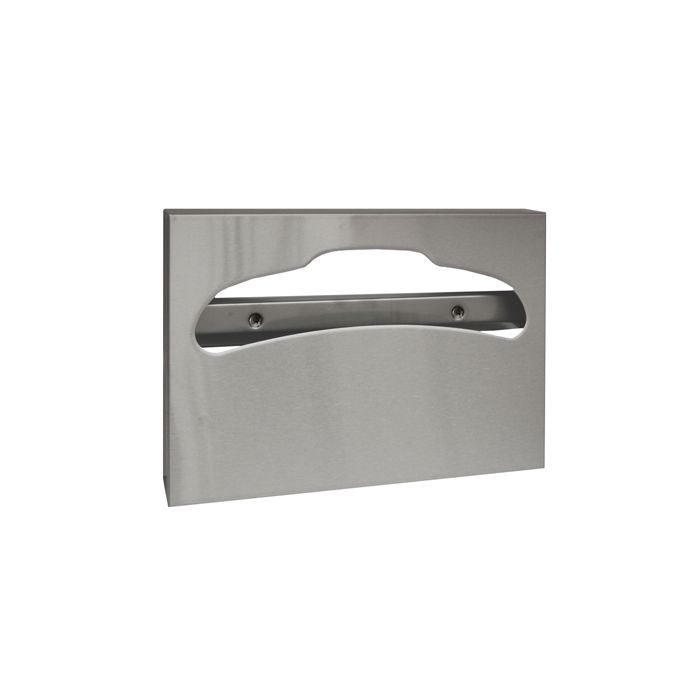 Surface-mounted toilet seat cover dispenser shall be fabricated of 22-gauge stainless steel with exposed surfaces in satin finish. Capacity 250 toilet seat covers.