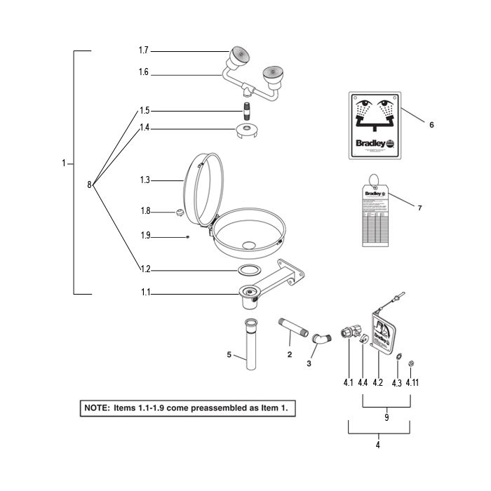 Bradley S19-220DCFW Parts Breakdown