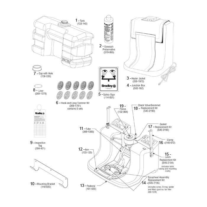 Bradley S19-921, S19-921H, & S19-921HR Parts Breakdown