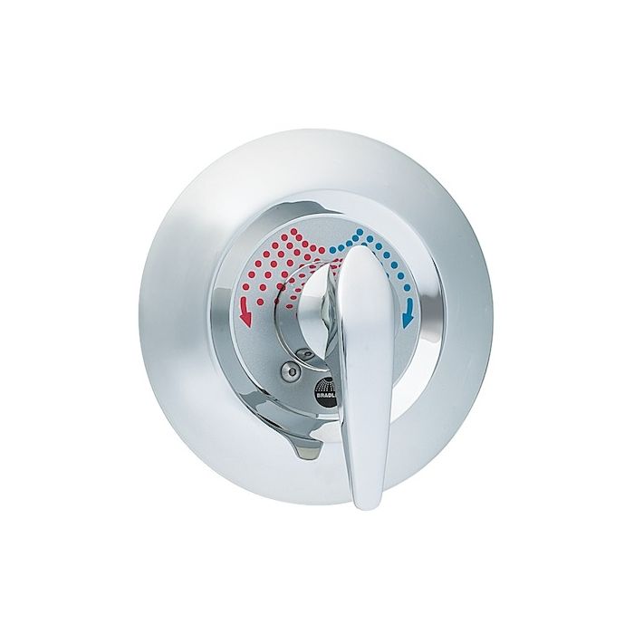 Water temperature is maintained by a stainless steel piston which instantly detects changes in supply pressures and automatically adjusts discharge ports keeping shower temperature constant to within 2° of the desired setting. Maximum delivery temperature is controlled by an adjustable limit stop which restricts the amount of hot water entering the valve. Should either hot or cold supply fail, the valve will shut off so as not to produce a spray or significant flow through the showerhead.