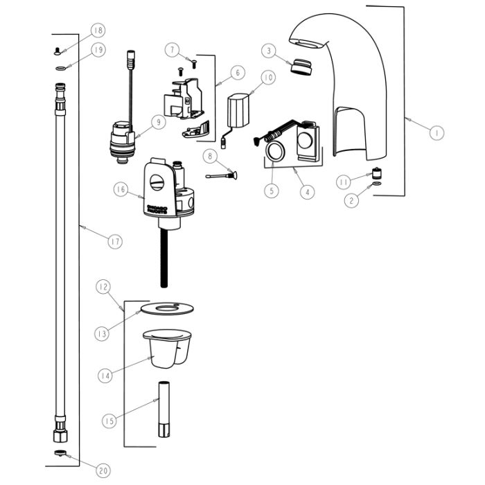 Chicago 116.102.21.1 Hytronic Contemporary Sensor Faucet Parts Breakdown