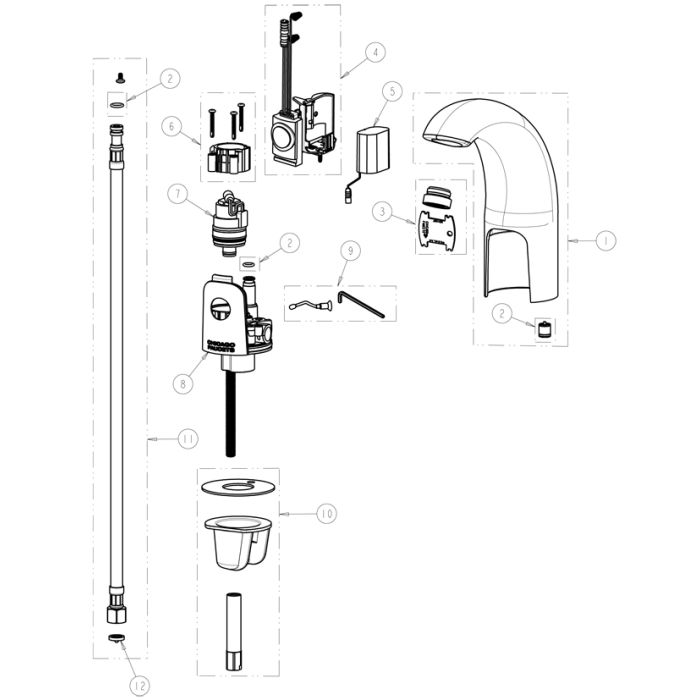 Chicago 116.102.AB.1 Hytronic Contemporary Sensor Faucet Parts Breakdown