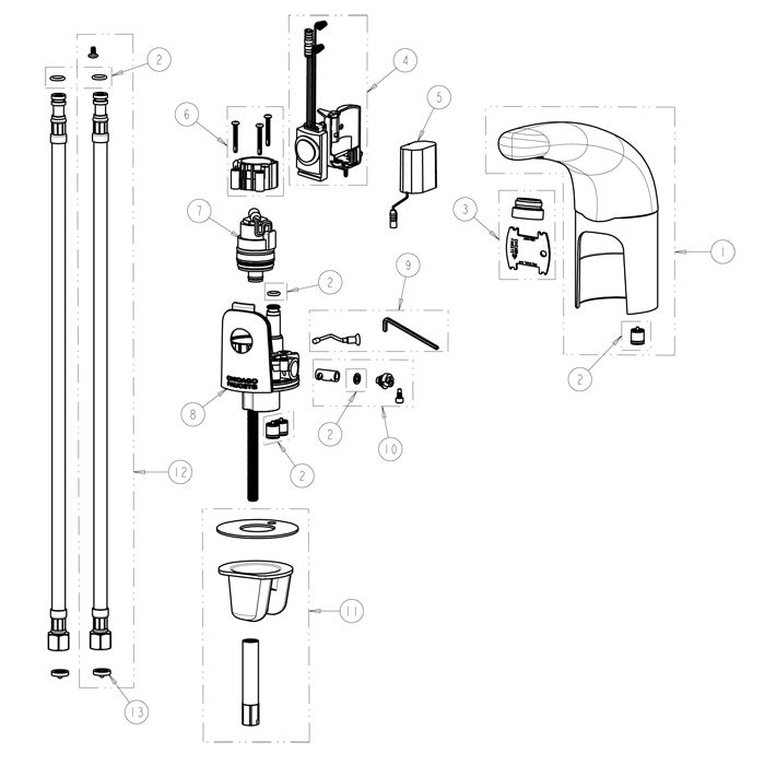 Chicago 116.111.AB.1 Hytronic Traditional Sensor Faucet Parts Breakdown