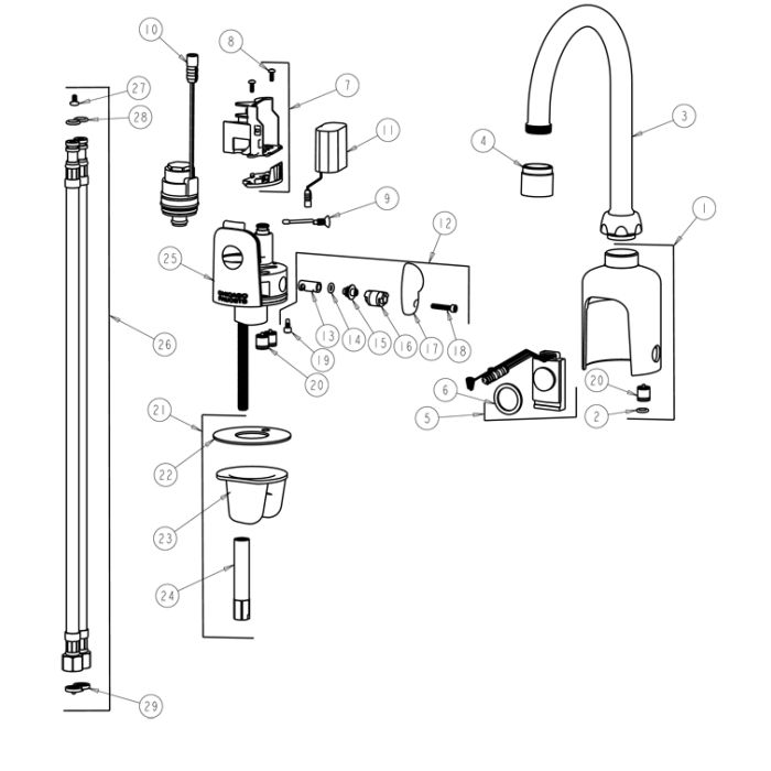 Chicago 116.123.21.1 Hytronic Gooseneck Sensor Faucet Parts Breakdown