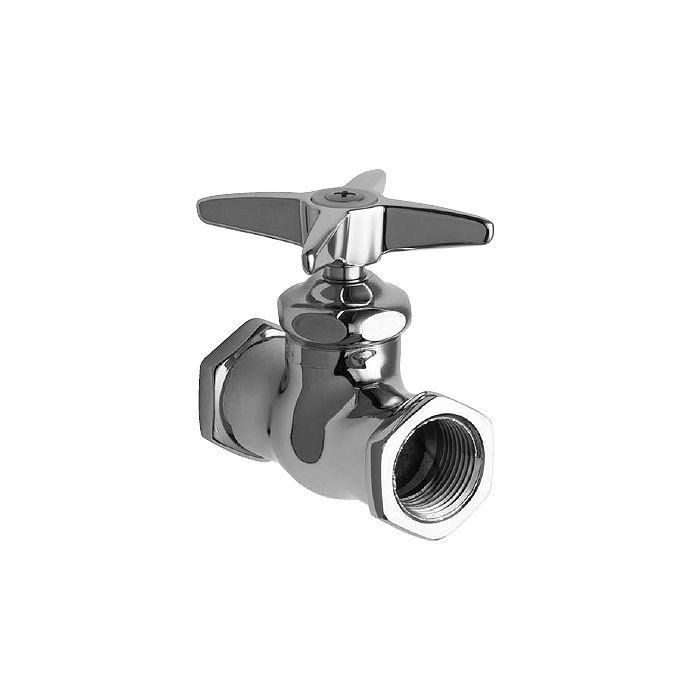 Chicago Faucets No. 375-CP, polished chrome plated solid cast brass construction. 3” diameter metal cross handle with eight point tapered broach and secured color coded index button. Slow compression renewable cartridge designed to close with water pressure with square tapered broach feature to help facilitate handle removal. 3⁄ 4" NPT inlet and 3/4” NPT outlet. This product is tested and certified to industry standards: ASME A112.18.1, CSA B125 and NSF 61, section 9.
