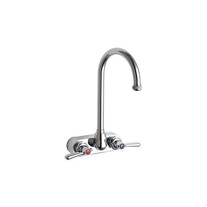 This Wall Mounted 4" Center Faucet w/Indexed Lever Handles includes: Quaturn Operating Cartridges, Indexed Lever Handles, Rigid/Swing Gooseneck Spout and 2.2 GPM Pressure Compensating Softflo Aerator. This faucet also has 1/2" NPSM coupling nut for 3/8" or 1/2" flexible riser. The Rigid/Swing Gooseneck Spout has a 9-3/4" height to top of spout, a 5-3/8" inlet to outlet projection and a 6-1/8" height to outlet.