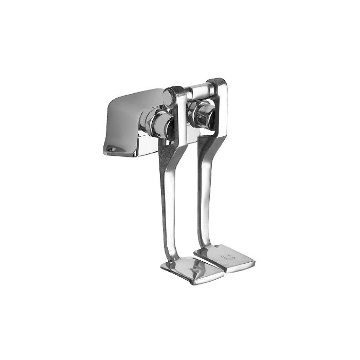 Chicago Faucets No. 625-LPCP, polished chrome plated solid brass construction, long metal pedals with "H" & "C" debossed on top. NAIAD™ self closing renewable cartridge. Two 1/2" NPT female back inlets, one 3/8" NPT female back outlet. This product is tested and certified to industry standards: ASME A112.18.1, CSA B125 and NSF 61, section 9.