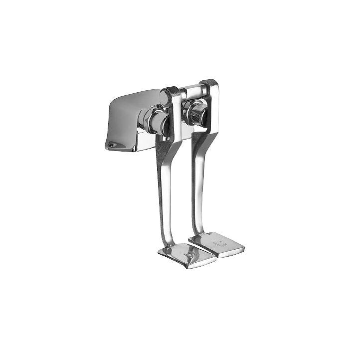 Chicago Faucets No. 625-LPSLOCP, polished chrome plated solid brass construction, long metal pedals with “H” & “C” debossed on top. NAIAD™ SLO closing renewable and adjustable metering cartridge. Two 1⁄ 2" NPT female back inlets, one 3⁄ 8" NPT female back outlet. This product is tested and certified to industry standards: ASME A112.18.1, CSA B125 and NSF 61, section 9.