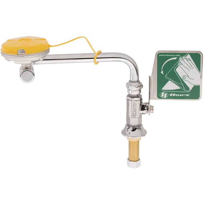 Description / Chicago 8004-RHNF Deck Mounted Right Hand Eye/Face Wash with Push Paddle Handle