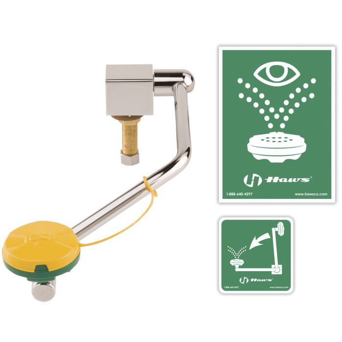 Description / Chicago 8010-NF Deck Mounted Swing Down Eye/Face Wash with Push Paddle Handle