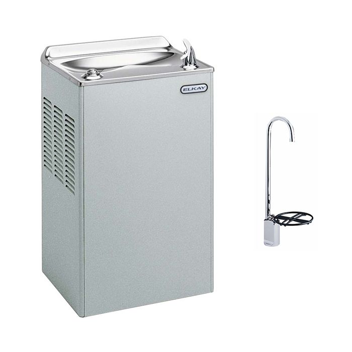Elkay Water Cooler comply with the requirements of A.D.A. (Americans with Disabilities Act) when properly installed. Also meets the guidelines for children’s environments providing the floor to orifice height is 30” or less and proper clear floor space is provided for parallel approach. (Based on Architectural and Transportation Barriers Compliance Board final ruling.) Check Local and State Codes. Elkay Water Coolers are manufactured with a waterway system utilizing copper components and completely lead-free materials. These waterways have no lead because all lead materials, such as leaded brass, have been removed. All joints are brazed using silver solder only. No lead solder is permitted. A strainer with an easily cleanable screen is provided to allow trapping and convenient removal of waterborne particulate of 140 microns and larger prior to their entry into the water cooler.