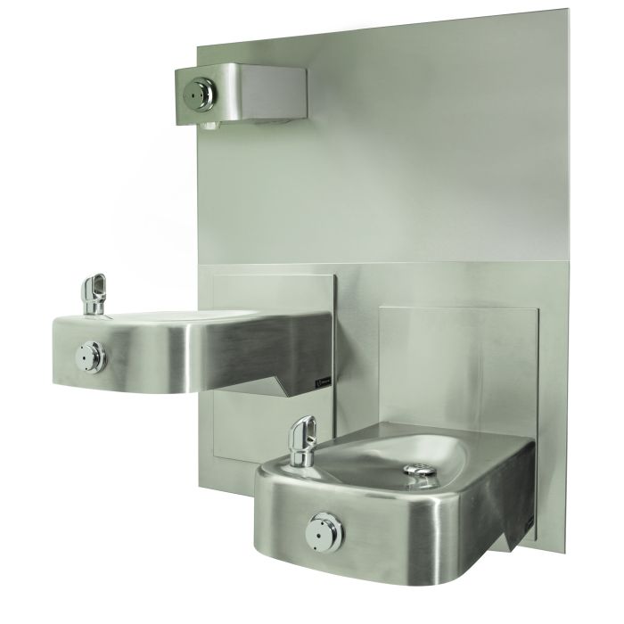 Haws 1117L 14 Gauge Hi-Lo SS, Satin Finish, Integral Bowl and Trap, Steel In-wall Mounting Plate w/Bottle Filler