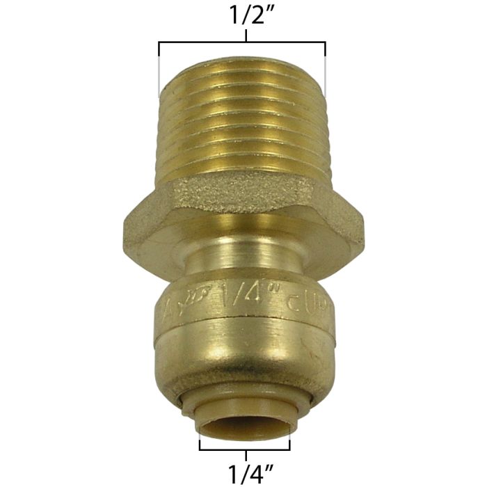 Description / SharkBite U110 Male Reducing Conector 1/4" x 1/2" MNPT