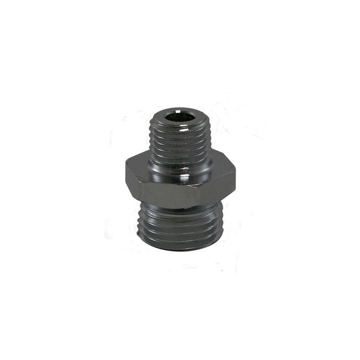The *T&S Brass 172A Adapter 1/4" x 3/4"-14* allows one to go from a T&S Brass hose to a Fisher 1/4" IPS male spring base.