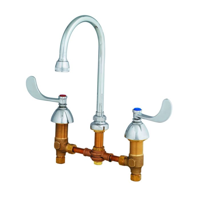 Concealed Body, 8" Centers, Wrist Handles, Swivel Gooseneck w/ Rosespray