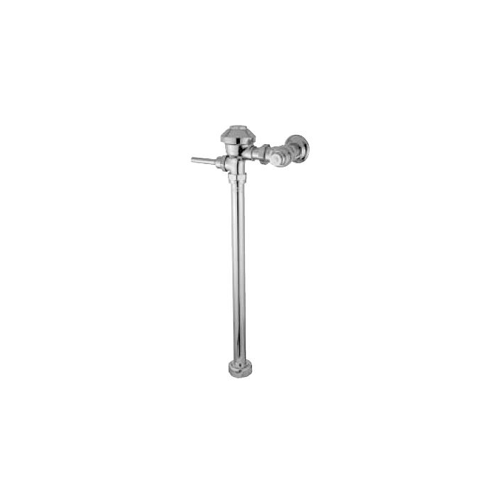 Exposed, quiet diaphragm-type, chrome plated, flushometer valve with a polished exterior. Complete with chloramine resistant, dual seal diaphragm with a clog resistant by-pass. The valve is ADA compliant with a non-hold open and no leak handle feature, high back pressure vacuum breaker, hex coupling nut and adjustable tailpiece, spud coupling and flange for top spud connection. Control stop has internal siphon-guard protection.