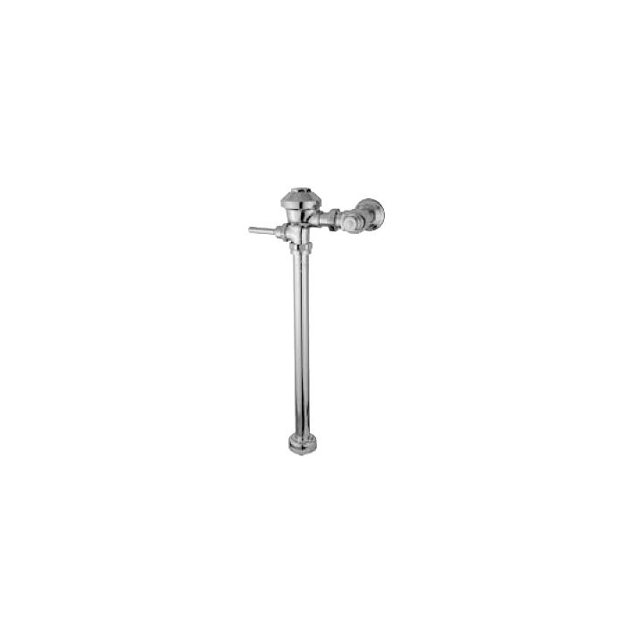 Exposed, quiet diaphragm-type, chrome plated, flushometer valve with a polished exterior. Complete with chloramine resistant, dual seal diaphragm with a clog resistant by-pass. The valve is ADA compliant with a non-hold open and no leak handle feature, high back pressure vacuum breaker, one piece hex coupling nut, adjustable tailpiece, spud coupling and flange for top spud connection. Internal seals are made of chloramine resistant materials.