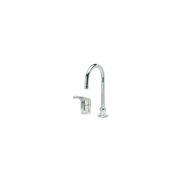 The Zurn Z824B0-XL AquaSpec is a lead free, polished chrome-plated single control faucet. It will come with a side 5-3/8" centerline rigid or swing gooseneck spout, a ceramic disc cartridge and a temperature limit stop.